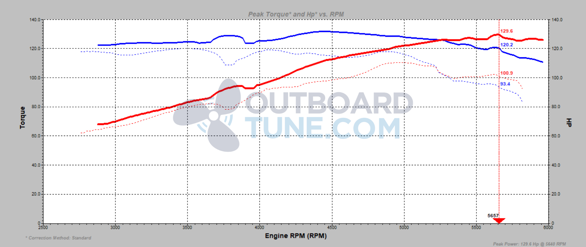 These results are from direct testing on our in-house water-brake dyno. As you can easily see, the gains in both HP and torque are undeniable. These are genuine results, from an actual Suzuki DF100A Engine we tuned for our customer. We take pride in being the best at what we do for boaties like us.