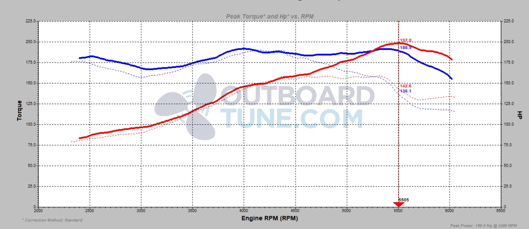 These results are from direct testing on our in-house water-brake dyno. As you can easily see, the gains in both HP and torque are undeniable. These are genuine results, from an actual Yamaha F175 Engine we tuned for our customer. We take pride in being the best at what we do for boaties like us.